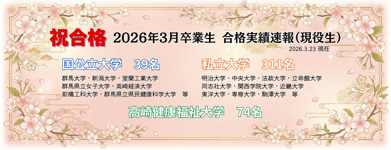 国公立大学35名合格(群馬大学、山梨大学、都留文科大学など)