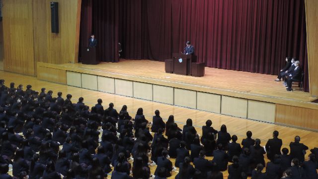 校歌斉唱の後に行われた加藤校長先生からの訓辞では、今年度の振り返りと、新年度に向けての心構えについて話していただきました。