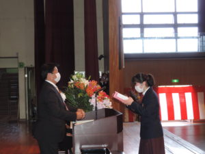 これから先、新しい道を歩んでいくにあたり、時に迷う事や苦しい事があると思います。その時には、諸先生方、先輩方、保護者の皆様温かくそして時には厳しくご指導くださいますようよろしくお願いいたします。