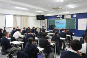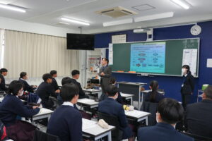 3月3日(火)3・4限に、2学年アスリートコースの生徒を対象として、早稲田大学およびみずほ証券による金融経済教育の出張授業が実施されました。